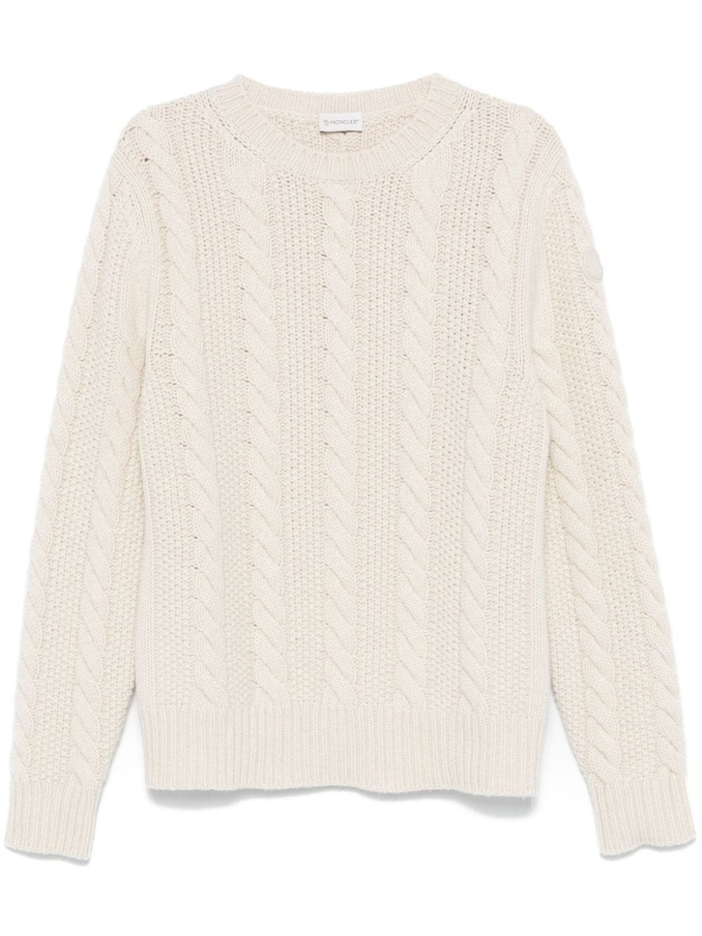 logo-patch sweater Highlights - White - Virgin wool-cashmere blend - Knitted construction - Cable knit - Logo patch at the sleeve - Ribbed trim - Crew neck - Long sleeves - Straight hem Made in Italy Composition Virgin Wool 90%, Cashmere 10% SIZE & FIT Model measurements Height 6 ft 1 in(1.85 m) Bust/Chest 35.82 in(91 cm) Hips 37.79 in(96 cm) Waist 29.13 in(74 cm) FittingInformation Designed for a regular fit, offering a comfortable loose fit throughout the body The ribbed hem offers a close, comfortable fit Made with a midweight knit, this piece offers some stretch