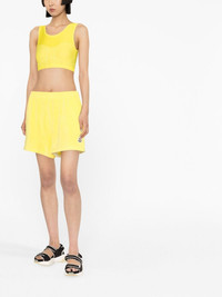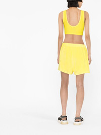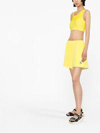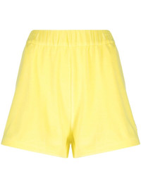 logo-patch terry-cloth shorts These shorts combine style and function in true Moncler style. Boasting a terry cloth effect in a zesty yellow hue, the relaxed silhouette is finished with the brand's familiar logo at the left leg. Highlights - Lemon yellow - Cotton blend - Terry-cloth effect - Logo patch to the side - Elasticated waistband - Two side slash pockets - Straight hem - Above-knee length Imported Composition Cotton 86%, Polyamide 14% SIZE & FIT Model measurements Height 5 ft 10 in(1.78 m) Bust/Chest 29.92 in(76 cm) Hips 34.64 in(88 cm) Waist 23.62 in(60 cm) FittingInformation Designed for a loose fit, offering comfort and movement when worn The elasticated waist allows for a comfortable fit Made from a midweight non-stretch fabric, this piece offers minimal elasticity when worn This piece fits true to size – take your usual size Measurement INSIDE LEG 3.14 in(8 cm) FRONT RISE 14.17 in(36 cm) HIPS 44.88 in(114 cm)