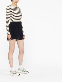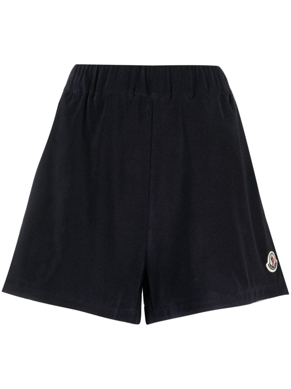 logo-patch velour shorts These shorts combine style and function in true Moncler style. Boasting a crushed velvet effect in a navy blue hue, the relaxed silhouette is finished with the label's familiar logo at the left leg. Highlights - Navy blue - Cotton blend - Logo patch to the side - Elasticated waistband - Two side inset pockets - Above-knee length Imported Composition Cotton 86%, Polyamide 14% SIZE & FIT Model measurements Height 5 ft 10 in(1.78 m) Bust/Chest 30.7 in(78 cm) Hips 34.64 in(88 cm) Waist 23.22 in(59 cm) Measurement FRONT RISE 14.17 in(36 cm) INSIDE LEG 2.99 in(7.6 cm) BACK RISE 14.48 in(36.8 cm) HIPS 42 in(106.7 cm) Hem Width 27.99 in(71.1 cm) WAIST 27.99 in(71.1 cm) FittingInformation Designed for a loose fit, offering comfort and movement when worn The elasticated waist allows for a comfortable fit Made from a midweight non-stretch fabric, this piece offers minimal elasticity when worn This piece fits true to size – take your usual size Washing instructions Hand Wash