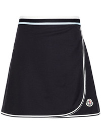 logo-patch wrap tennis skirt Highlights - Navy blue - Cotton - Pique weave - Stripe trim - Logo patch to the front - Wraparound style - Side press-stud fastening - Thigh-length - Straight hem - Unlined Imported Composition Cotton 100% SIZE & FIT Model measurements Height 5 ft 10 in(1.78 m) Bust/Chest 29.92 in(76 cm) Hips 34.64 in(88 cm) Waist 23.62 in(60 cm) FittingInformation This mini-length skirt is intended to be worn high on the waist The elasticated waist allows for a comfortable fit Made from a midweight non-stretch fabric, this piece offers minimal elasticity when worn This piece fits true to size – take your usual size Washing instructions Machine Wash