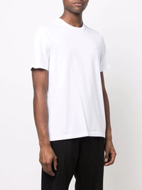 logo-print cotton T-shirt Moncler's origins are detailed on the logo print at the back of this cotton T-shirt. The large M symbol is replicated in a tonal raised design on the chest. Imported Composition Polyester 100%, Cotton 100% SIZE & FIT Model measurements Height 6 ft 2 in(1.88 m) Bust/Chest 36.61 in(93 cm) Hips 35.82 in(91 cm) Waist 27.95 in(71 cm) FittingInformation This piece fits true to size. We recommend you get your regular size Cut for a relaxed fit Made with a mid-weight fabric Washing instructions Machine Wash