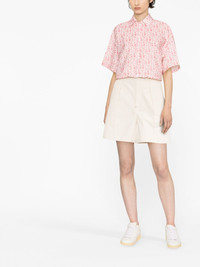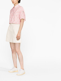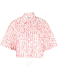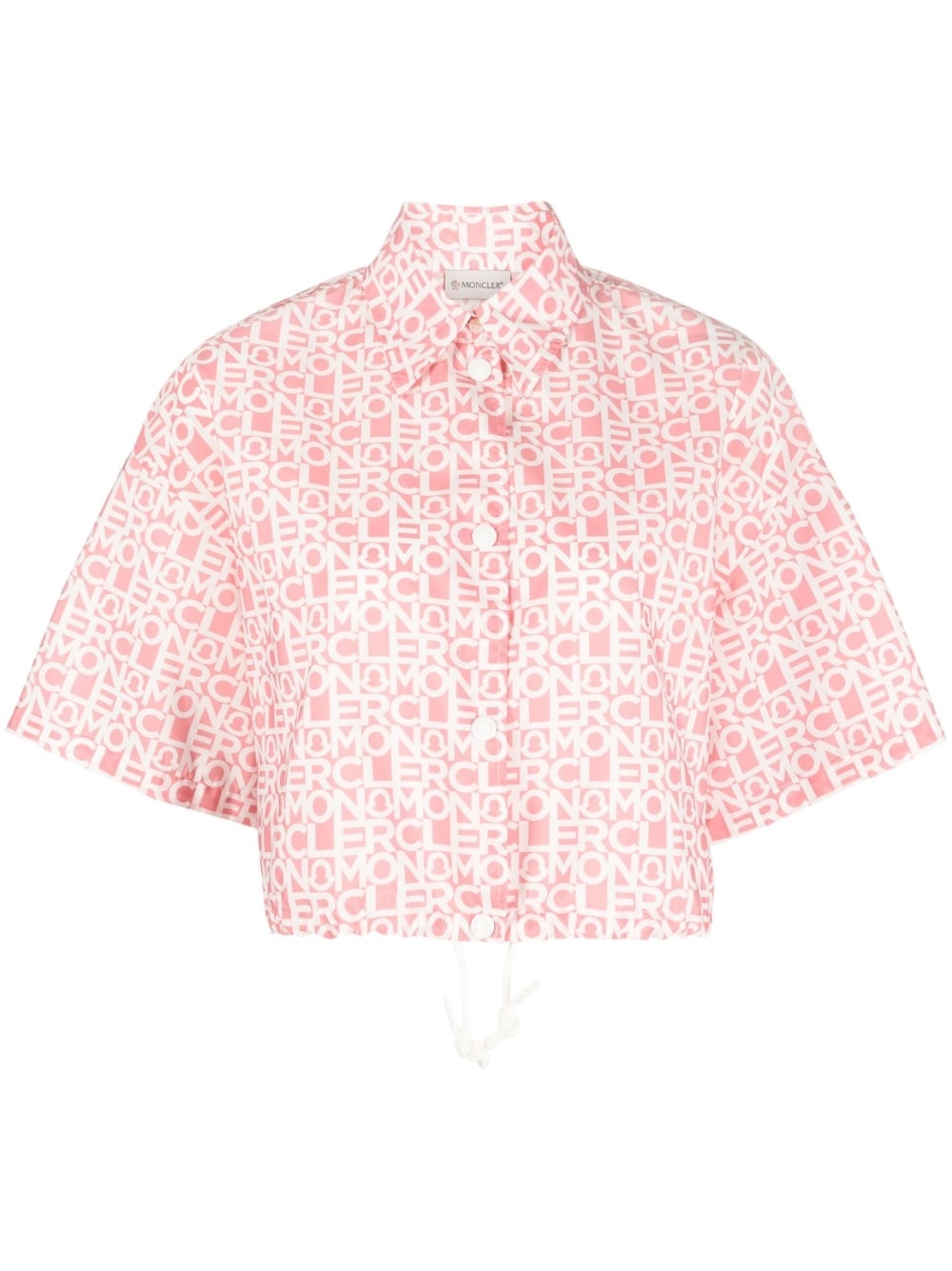 logo-print cropped shirt An all-over logo print lends a recognisable look to this shirt from Moncler. It appears in a full coral-pink shade, allowing for the white contrasting logo to stand out. Imported Composition Polyester 100% SIZE & FIT Model measurements Height 5 ft 10 in(1.78 m) Bust/Chest 30.7 in(78 cm) Hips 34.64 in(88 cm) Waist 23.22 in(59 cm) Measurement LENGTH 18.11 in(46 cm) FittingInformation Designed to be unstructured, offering a loose fit throughout The adjustable drawstring means that you can adjust this piece’s fit to suit your comfort and preference Made from a lightweight non-stretch fabric This piece fits true to size – take your usual size Washing instructions Dry Clean Only