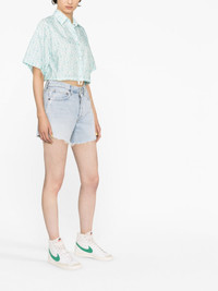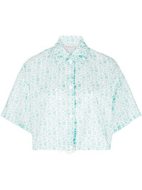 logo-print cropped shirt This shirt from Moncler speaks to the label’s penchant for punchy prints. Rendered in an aqua-blue hue, it’s contrasted with a white monogram motif. Imported Composition Polyester 100% SIZE & FIT Model measurements Height 5 ft 10 in(1.78 m) Bust/Chest 30.7 in(78 cm) Hips 34.64 in(88 cm) Waist 23.22 in(59 cm) FittingInformation Designed to be unstructured, offering a loose fit throughout The adjustable drawstring means that you can adjust this piece’s fit to suit your comfort and preference Made from a lightweight non-stretch fabric Washing instructions Dry Clean Only