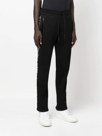 logo-print drawstring track pants logo-print drawstring track pants from MONCLER featuring black/white, cotton blend, logo print to the side, elasticated waistband, two diagonal pockets to the sides and elasticated cuffs. Imported Composition Cotton 100%, Polyamide 100% SIZE & FIT Model measurements Height 6 ft 2 in(1.87 m) Bust/Chest 36.41 in(92.5 cm) Hips 37 in(94 cm) Waist 29.52 in(75 cm) FittingInformation This piece fits true to size. We recommend you get your regular size Cut for a slim fit Made with a mid-weight fabric Washing instructions Machine Wash