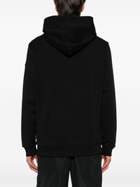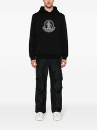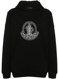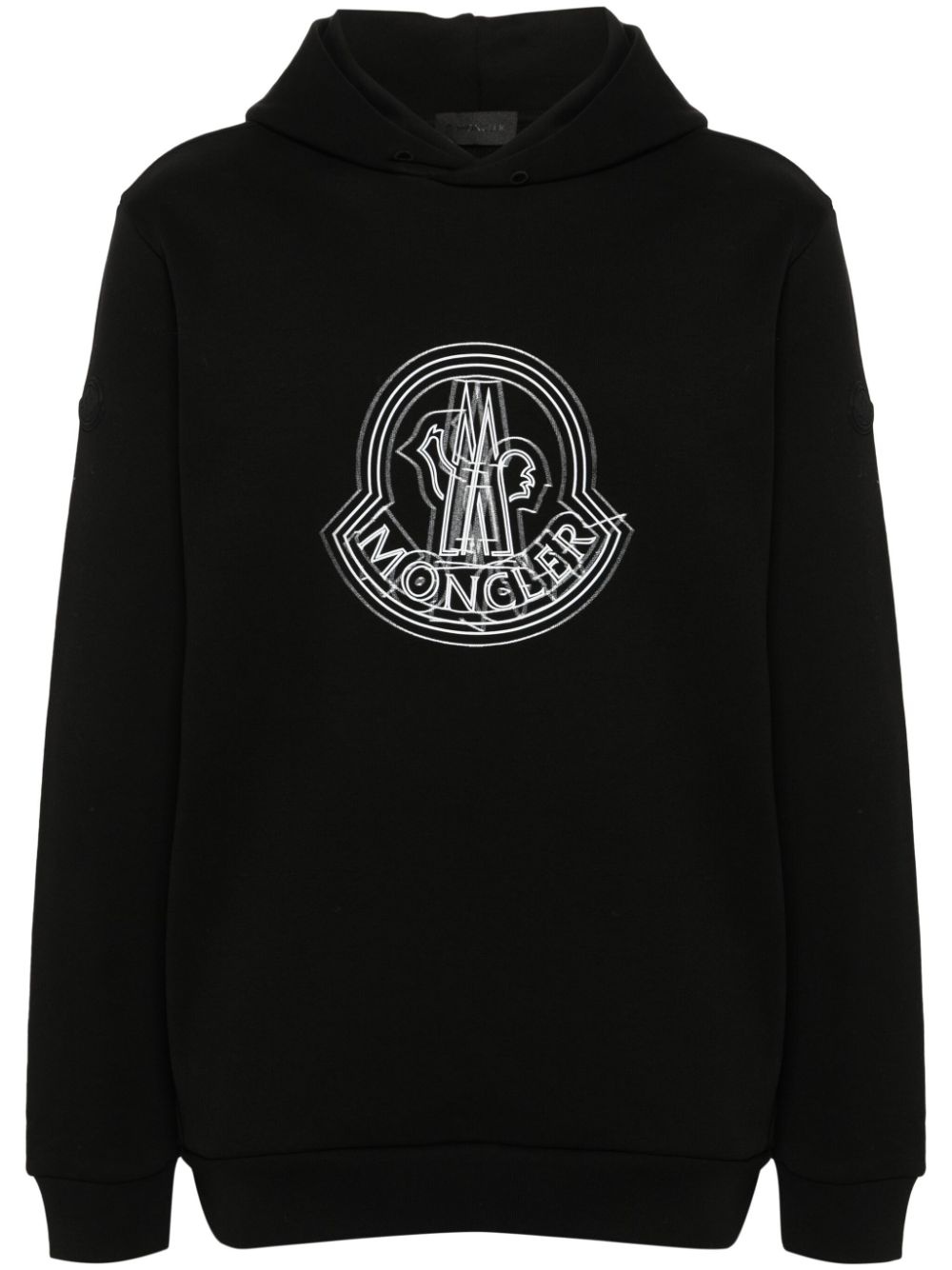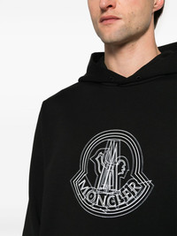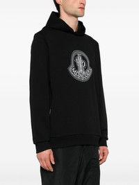 logo-print hoodie Moncler's iconic logo takes centre stage in this black cotton hoodie. The motif is emblazoned across the front in contrasting white for an instantly recognisable finish. Highlights - Black - Cotton - Jersey texture - Slouchy hood - Logo print at the chest - Two front zip fastening pockets - Long sleeves with ribbed cuffs - Applique logo at the sleeve - Ribbed hem - French terry lining Imported Composition Cotton 100% SIZE & FIT Model measurements Height 6 ft 2 in(1.87 m) Bust/Chest 37.79 in(96 cm) Hips 37.79 in(96 cm) Waist 30.31 in(77 cm) FittingInformation Designed to be unstructured, offering a loose fit throughout The ribbed hem offers a close, comfortable fit Made from a midweight non-stretch fabric, this piece offers minimal elasticity when worn This piece fits true to size – take your usual size Measurement CHEST 45.98 in(116.8 cm) SLEEVE LENGTH 25.98 in(66 cm) LENGTH 27 in(68.6 cm) WAIST 42 in(106.7 cm)