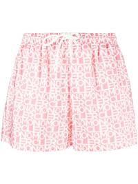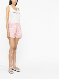 logo-print shorts Unmistakable in their identity, Moncler's shorts are patterned with an all-over logo print in a soft white and pink colourway. Imported Composition Polyester 100% SIZE & FIT Measurement FRONT RISE 12.2 in(31 cm) HIPS 38.58 in(98 cm) FittingInformation Designed for a loose fit, offering comfort and movement when worn The elasticated waist allows for a comfortable fit Made from a lightweight non-stretch fabric This piece fits true to size – take your usual size Washing instructions Dry Clean Only