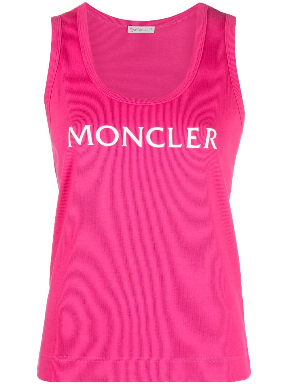logo-print tank top Moncler's scoop-neck tank top is solely decorated with the brand's logo at the chest. The contrasting white letters pop against the pink background. Imported Composition Cotton 96%, Spandex/Elastane 4% SIZE & FIT Model measurements Height 5 ft 10 in(1.78 m) Bust/Chest 30.7 in(78 cm) Hips 34.64 in(88 cm) Waist 23.22 in(59 cm) FittingInformation Designed for a relaxed fit, this piece allows for comfort and movement when worn Made from a midweight stretch fabric, this piece offers elasticity and flexibility when worn This piece fits true to size – take your usual size Measurement BUST 34.01 in(86.4 cm) LENGTH 23.5 in(59.7 cm) WAIST 34.01 in(86.4 cm) Washing instructions Machine Wash