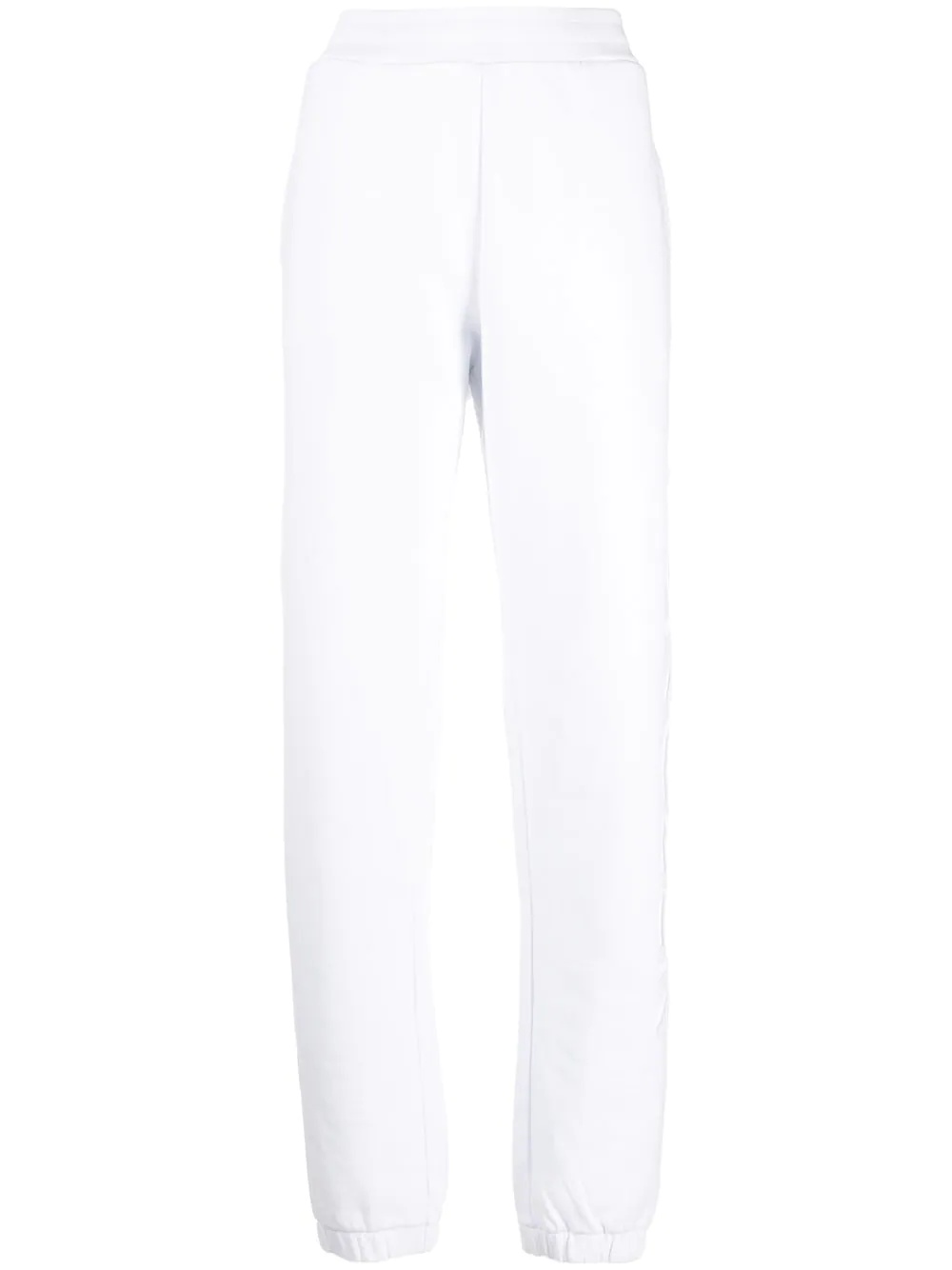 logo tracksuit bottoms Highlights - White - Cotton - Logo patch to the rear - Straight leg - Elasticated waistband - Rear patch pocket Made in United Kingdom Composition Cotton 100%, Polyester 100% SIZE & FIT Model measurements Height 5 ft 10 in(1.77 m) Bust/Chest 29.92 in(76 cm) Hips 34.25 in(87 cm) Waist 23.62 in(60 cm) FittingInformation This piece fits true to size. We recommend you get your regular size Designed to be loose over the leg with a fitted waist and hem Made with a mid-weight fabric Washing instructions Machine Wash