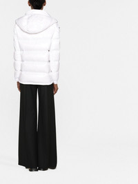 Maire quilted hooded jacket Made from white nylon laque, the Maire jacket is padded with feather down for an insulating effect enhanced by its quilted construction, Benefiting from a hood, this piece is adorned with a recognisable logo at the sleeve whilst seamlessly channelling Moncler's focus on both performance and design. Imported Composition Lining: Polyamide 100%, Down 90%, Feather 10% Outer: Polyamide 100% SIZE & FIT Model measurements Height 5 ft 10 in(1.77 m) Bust/Chest 31.49 in(80 cm) Hips 33.85 in(86 cm) Waist 22.44 in(57 cm) FittingInformation This piece fits true to size. We recommend you get your regular size Cut for a loose fit Made with a mid-weight non-stretch fabric Washing instructions Machine Wash