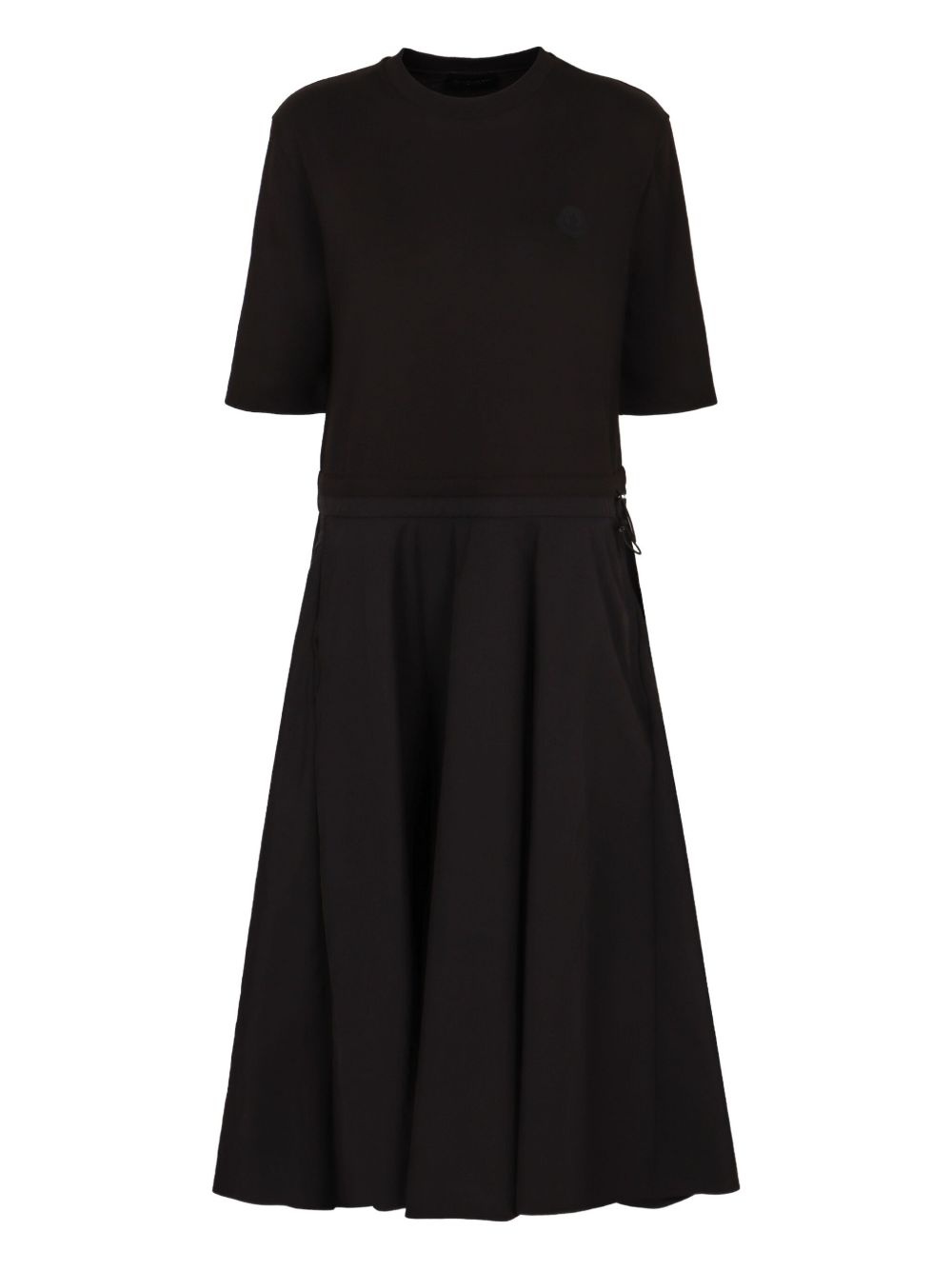 midi T-shirt dress Highlights - Black - Crew neck - Drawstring waist - Short sleeves - Flared skirt Imported Composition Outer: Polyamide 100%, Cotton 100% Lining: Viscose 100%