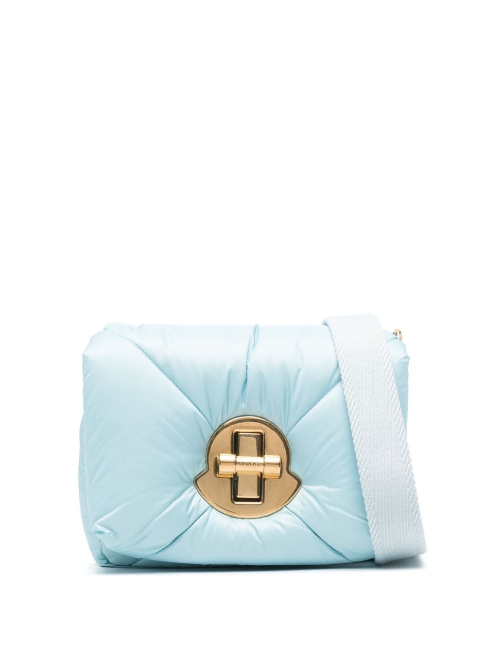 mini Puf cross body bag Moncler’s light-blue Puf bag ‘subtly nods to brand heritage’ with its quilted shell construction and padded silhouette. It’s crafted to a mini shape and fastens with a logo turn-lock for both functional and decorative detail. Highlights - Light blue - Shell - Padded design - Quilted - Leather trim - Adjustable detachable shoulder strap - Gold-tone logo plaque to the front - Main compartment - Internal logo patch - Full lining - Foldover top with turn-clasp fastening - This piece comes complete with a protective dust bag. Imported Composition Outer: Calf Leather 100%, Polyamide 100% Lining: Polyamide 100%, Goose Down 100% SIZE & FIT Model measurements Height 5 ft 9 in(1.76 m) Bust/Chest 31.88 in(81 cm) Hips 35.43 in(90 cm) Waist 24.8 in(63 cm) Measurement DEPTH 1.96 in(5 cm) HEIGHT 4.72 in(12 cm) STRAP 61.41 in(156 cm) WIDTH 6.69 in(17 cm)
