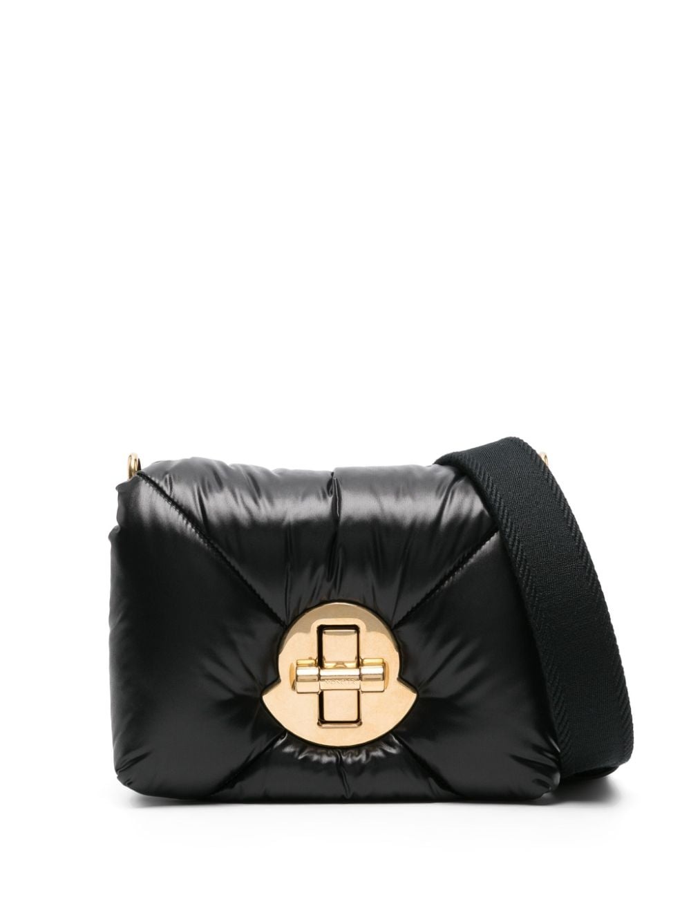 mini Puf leather crossbody bag Highlights - Black - Calf leather/feather down - Padded design - Quilted - Gold-tone logo plaque - Foldover top - Logo-engraved twist-lock fastening - Adjustable shoulder strap - Full lining - Internal logo patch - Main compartment - Gold-tone hardware - Authenticity qr code - This piece comes complete with a protective dust bag. Imported Composition Outer: Polyamide 100%, Calf Leather 100% Lining: Polyamide 100%, Feather Down 100% SIZE & FIT Model measurements Height 5 ft 11 in(1.8 m) Bust/Chest 31.49 in(80 cm) Hips 36.22 in(92 cm) Waist 25.59 in(65 cm) Measurement DEPTH 1.96 in(5 cm) HEIGHT 3.93 in(10 cm) STRAP 31.49 in(80 cm) WIDTH 5.9 in(15 cm)
