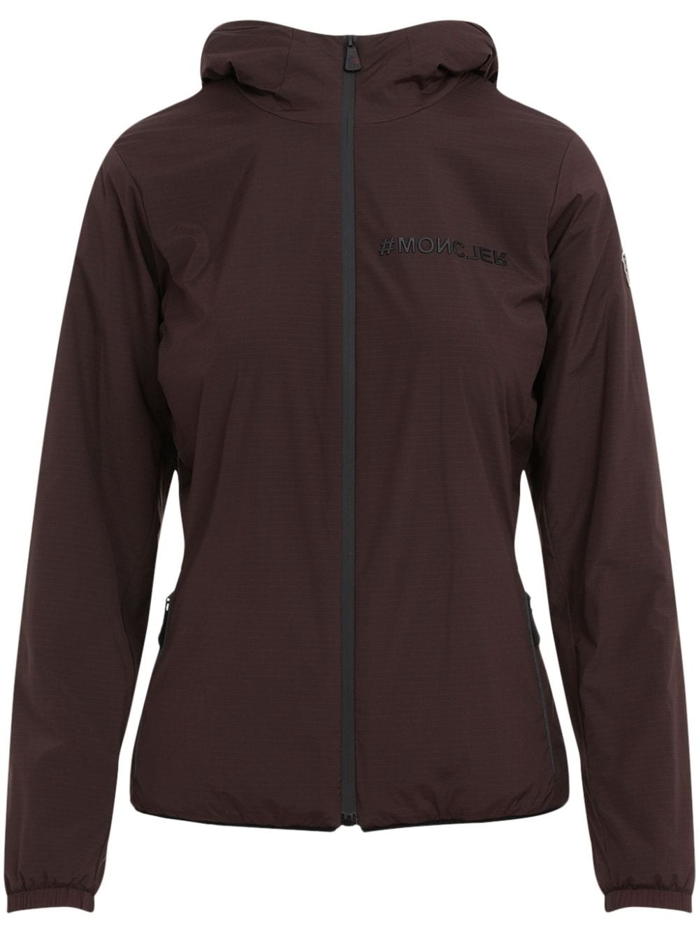 monogram-plaque hooded jacket Highlights - Brown - Textured finish - Monogram plaque - Logo print to the rear - Logo-engraved hardware - Classic hood - Front zip fastening - Elasticated cuffs Imported Composition Lining: Polyester 100% Outer: Polyamide 85%, Spandex/Elastane 15%