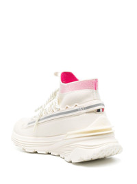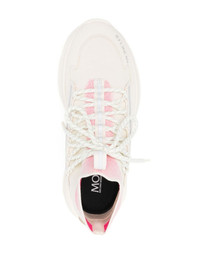Monte runner lace-up sneakers Moncler's Monte runner sneakers are enhanced by a contrasting pink sock-style ankle and embroidered at the sidewall with the label's signature. Highlights - White/rose pink - Faux leather - Debossed logo to the front - Front lace-up fastening - Round toe - Branded insole - Chunky rubber sole - Sock-style ankle Imported Composition Other fibres 100% SIZE & FIT Measurement HEEL 1.96 in(5 cm) Sole height 0.78 in(2 cm)