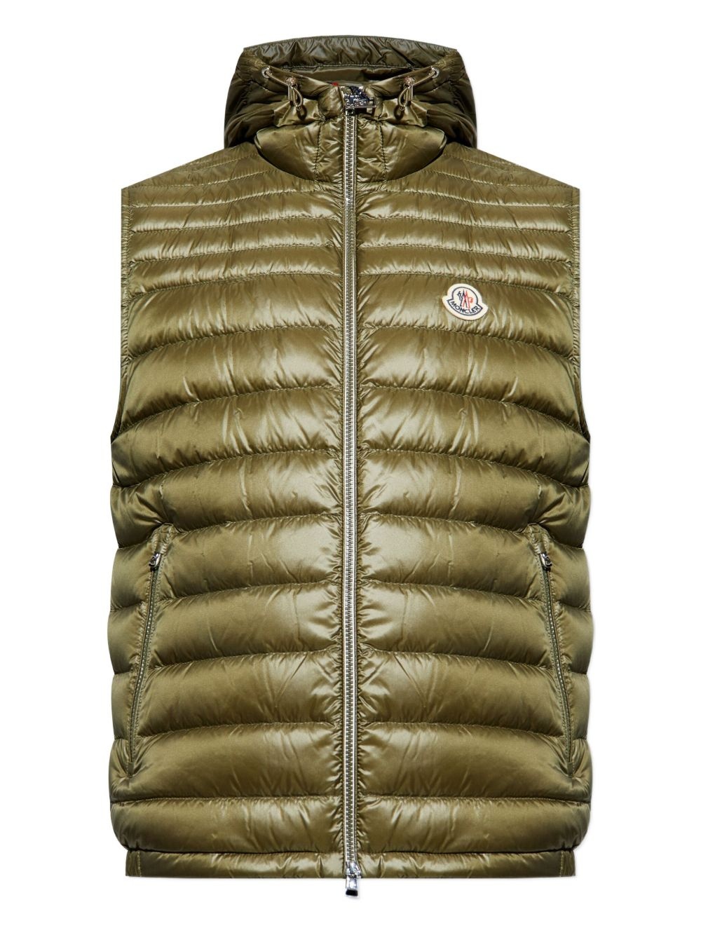 Orant down vest Highlights - Olive green - Front zip fastening - Drawstring hood - Sleeveless - Logo patch at the chest - Two side zip-fastening pockets - Straight hem Imported Composition Outer: Polyamide 100% Lining: Polyamide 100%, Down 90%, Feather 10% Washing instructions Hand Wash