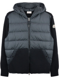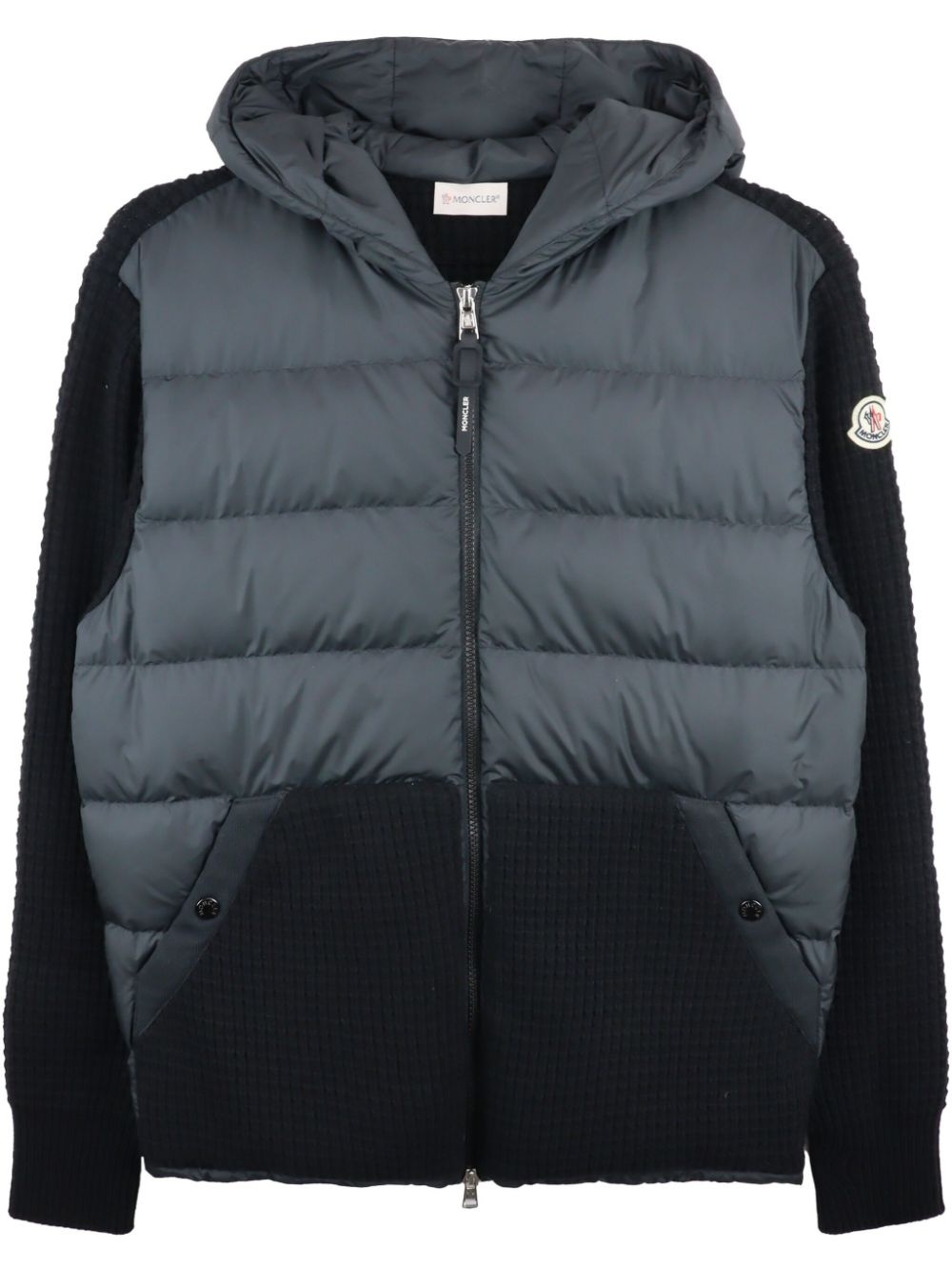 padded cardigan Highlights - Black - Front zip fastening - Classic hood - Logo patch at the sleeve - Long sleeves Imported Composition Outer: Polyester 100%, Wool 90%, Cashmere 10% Lining: Polyester 100%, Goose Down 90%, Feather 10%