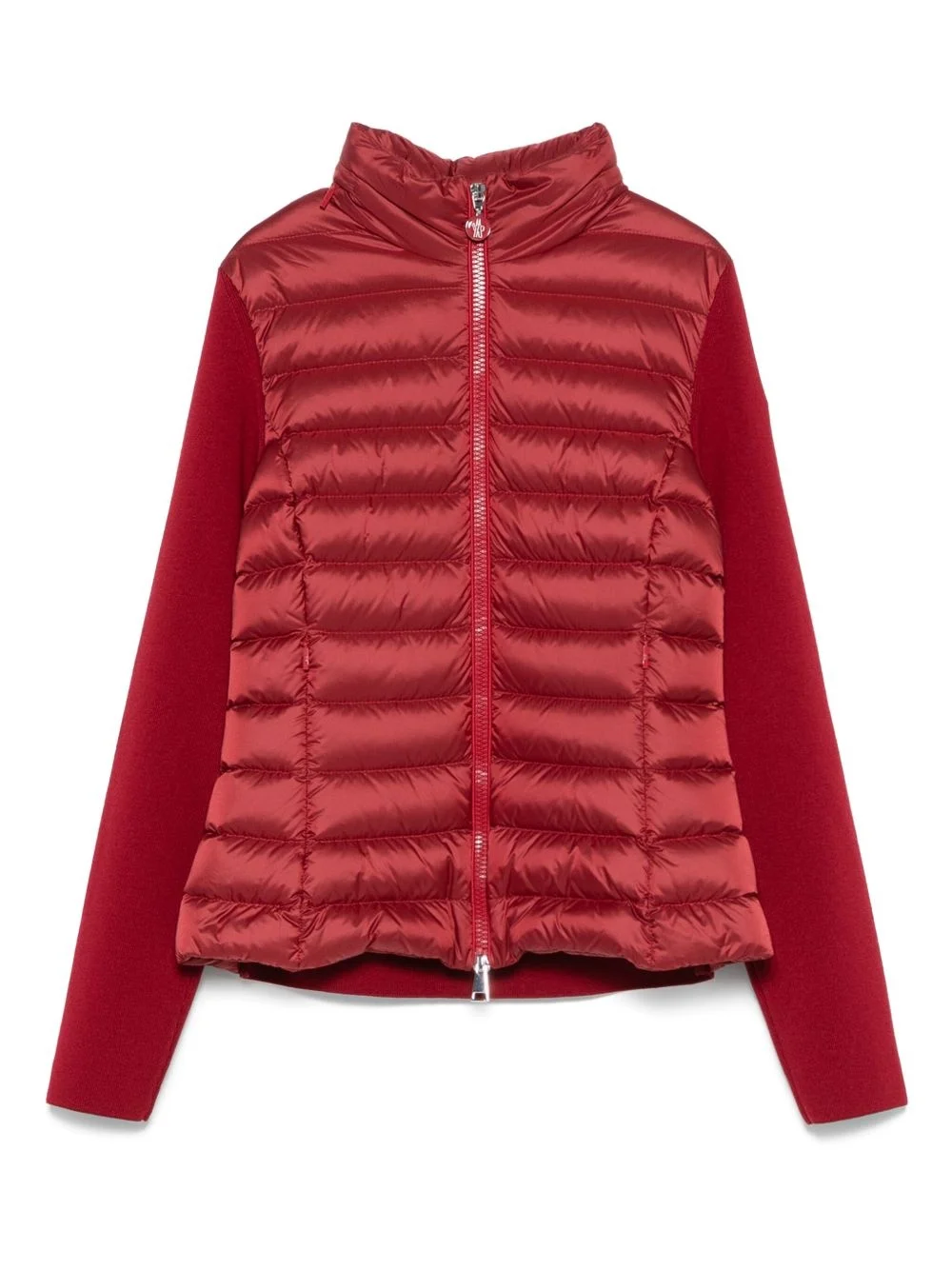 padded-front knit jacket Highlights - Burgundy - Front zip fastening - Funnel neck - Long sleeves - Logo patch at the sleeve Imported Composition Outer: Polyamide 100%, Virgin Wool 95%, Polyester 5% Lining: Polyamide 100%, Goose Down 90%, Goose Feather 10% SIZE & FIT Model measurements Height 5 ft 9 in(1.75 m) Bust/Chest 34.64 in(88 cm) Hips 36.61 in(93 cm) Waist 26.37 in(67 cm) FittingInformation Designed for a slim fit that sits just away from the body offering a close yet comfortable fit Made from a padded non-stretch fabric, giving it no natural elasticity Washing instructions Dry Clean Only