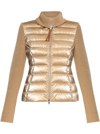 logo-patch panelled jacket Highlights - Beige - Virgin wool - Down-feather filling - Knitted construction - Quilted panel - Front two-way zip fastening - Roll neck - Long sleeves - Applique logo - Two side zip-fastening pockets - Straight hem Made in Italy Composition Outer: Polyamide 100%, Virgin Wool 100% Lining: Polyamide 100%, Goose Down 90%, Goose Feather 10% SIZE & FIT FittingInformation Designed for a slim fit that sits just away from the body offering a close yet comfortable fit Made from a midweight fabric Washing instructions Read Manufacturer Guidelines