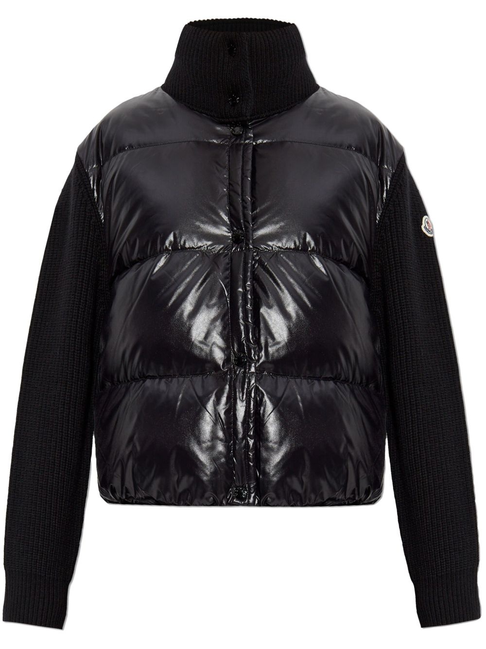 padded wool cardigan Highlights - Black - Front press-stud fastening - High neck - Long sleeves - Logo patch at the sleeve Made in Italy Composition Outer: Wool 100%, Nylon 100% Lining: Recycled Nylon 100%, Feather Down 100%
