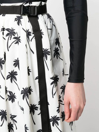 palm tree-print midi skirt off-white/jet black palm tree print side stripe detailing high-waisted flared hem Imported Composition Outer: Polyamide 100% Lining: Acetate 56%, Viscose 44% SIZE & FIT Model measurements Height 5 ft 10 in(1.78 m) Bust/Chest 31.49 in(80 cm) Hips 36.22 in(92 cm) Waist 25.59 in(65 cm) FittingInformation This piece fits true to size. We recommend you get your regular size Designed for a loose fit with a close fit at the waist Made with a lightweight non-stretch fabric