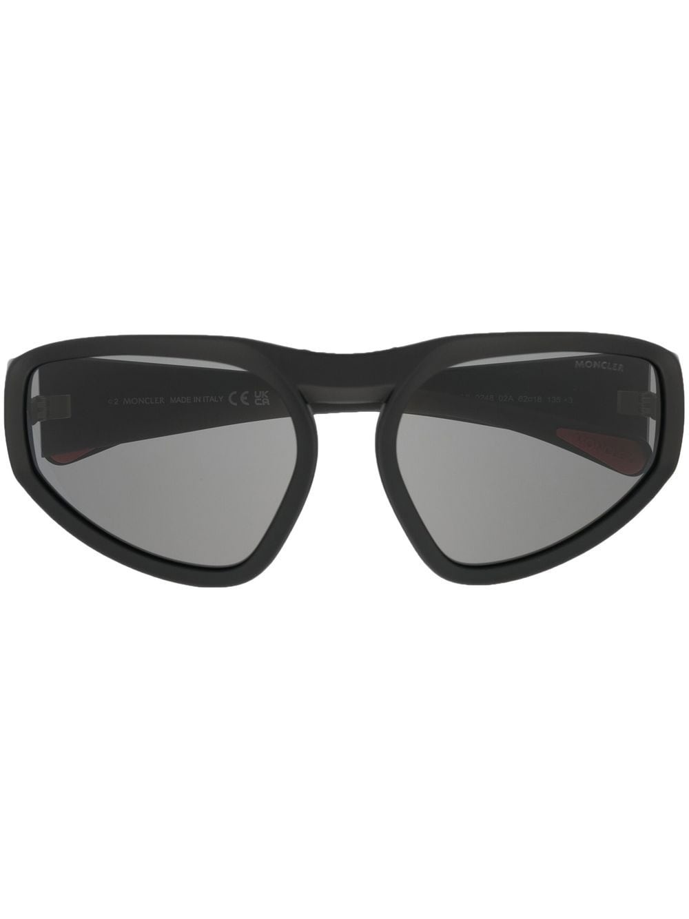 Pentagra geometric sunglasses black acetate matte finish grey tinted lenses geometric frame logo plaque at the arm sculpted arms curved tips These glasses come with a protective case. Made in Italy Composition Acetate 100% SIZE & FIT Measurement Arm Length 5.31 in(13.5 cm) Bridge Width 0.7 in(1.8 cm) Lens Diameter 2.44 in(6.2 cm) Total Width 5.51 in(14 cm)