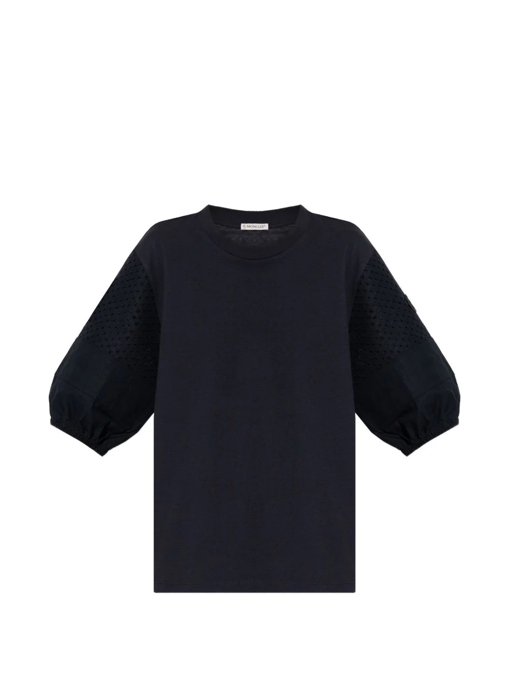 perforated puff-sleeve T-shirt Highlights - Dark blue - Cotton - Round neck - Short sleeves - Perforated detailing - Puff sleeves Imported Composition Cotton 100% Washing instructions Read Manufacturer Guidelines