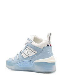 Pivot high-top sneakers Moncler draws inspiration from classic basketball shoes for the Pivot sneakers. The sporty high-top silhouette is crafted with panels of leather, and finished with a transparent rubber sole for an unexpected modern touch. Made in Italy Composition Leather 100% SIZE & FIT Measurement HEEL 1.37 in(3.5 cm) HEIGHT 3.54 in(9 cm) Sole height 0.98 in(2.5 cm)