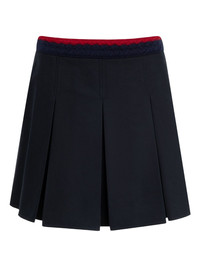 pleated mini skirt Highlights - Navy blue - Box-pleat design - A-line - Contrasting waistband - Concealed zip fastening Imported Composition Cotton 98%, Spandex/Elastane 2% Washing instructions Hand Wash