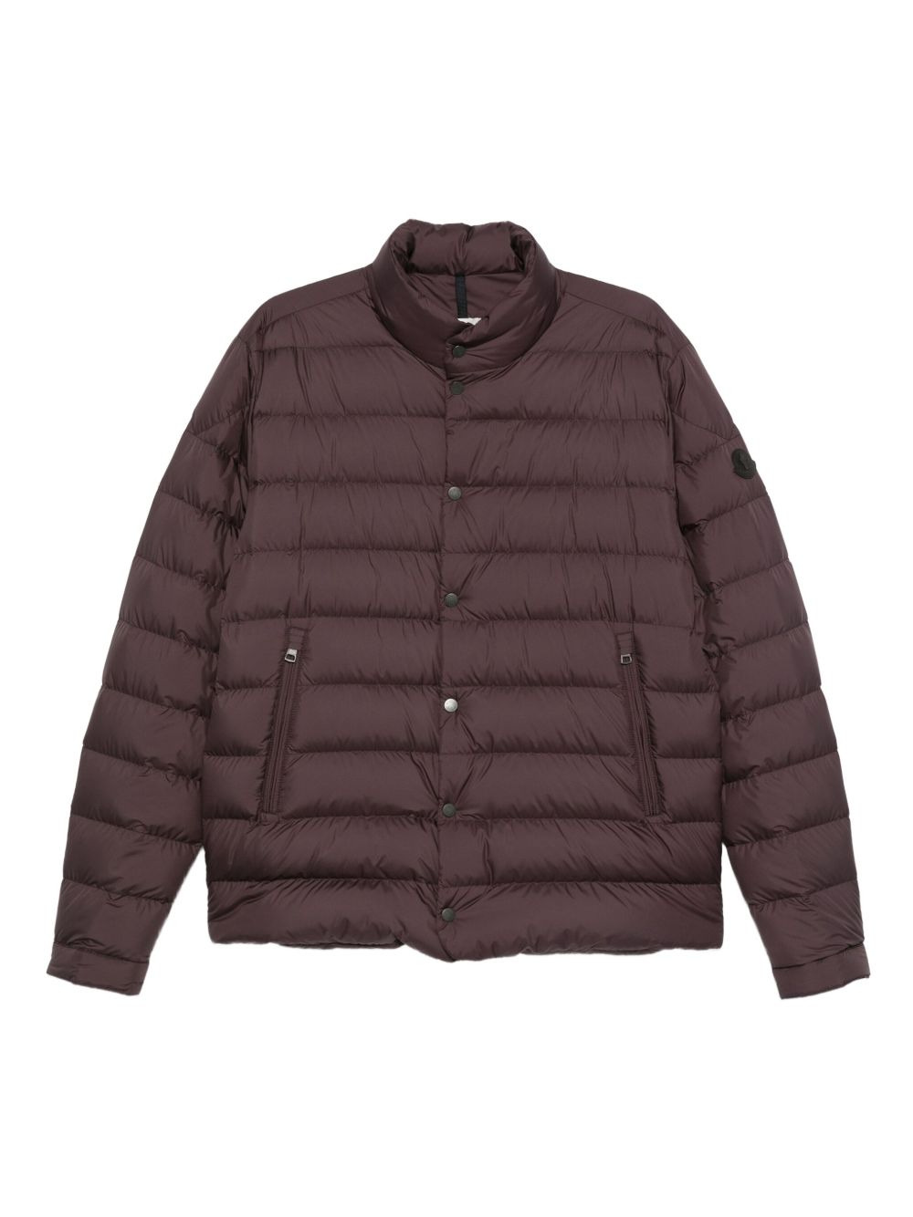 quilted jacket Highlights - Purple - Quilted design - Press stud fastening - High neck - Welt pockets - Long sleeves Imported Composition Outer: Polyester 100%, Calf Leather 100% Lining: Polyester 100%, Goose Down 90%, Goose Feather 10% Washing instructions Machine Wash