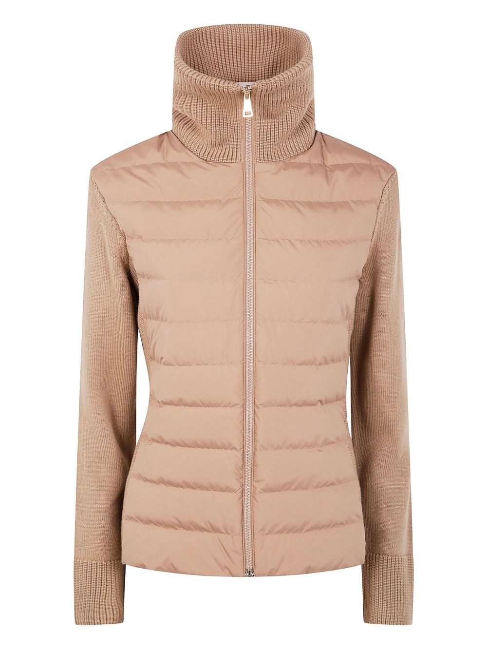 quilted knit padded jacket Highlights - Beige - Quilted panels - High neck - Zip fastening - Long sleeves - Knit sleeves Imported Composition Polyester 100% Washing instructions Read Manufacturer Guidelines