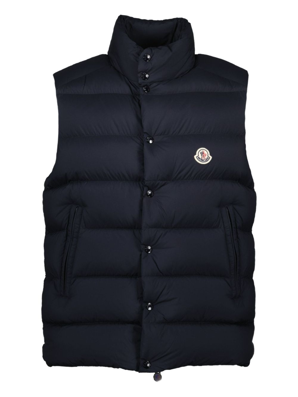 quilted logo-plaque sleeveless gilet Highlights - Navy blue - Quilted design - Snap button fastening - Zip fastening - High neck - Logo patch Imported Composition Outer: Polyamide 100% Lining: Polyamide 100%, Down 90%, Feather 10% SIZE & FIT FittingInformation Designed for a slim fit, offering a comfortable fit that sits just away from the body Made from a padded non-stretch fabric, giving it no natural elasticity Washing instructions Read Manufacturer Guidelines