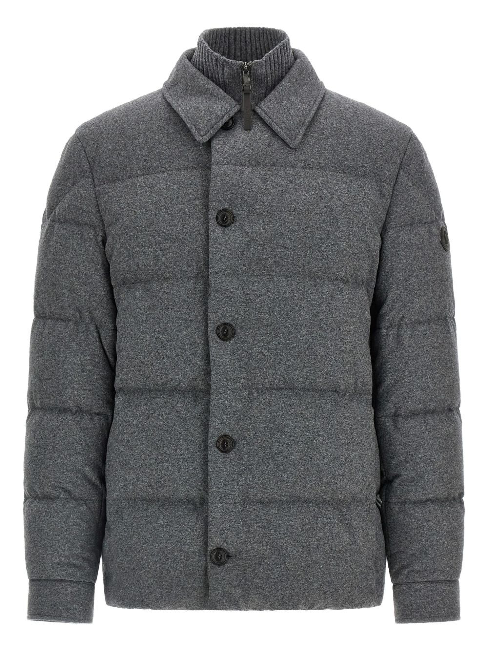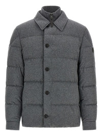 quilted shirt collar down jacket Highlights - Grey - Quilted - Shirt collar - Front zip and button closure - Cuffed sleeves Imported Composition Outer: Polyamide 53%, Cashmere 47% Lining: Goose Down 100% Washing instructions Read Manufacturer Guidelines