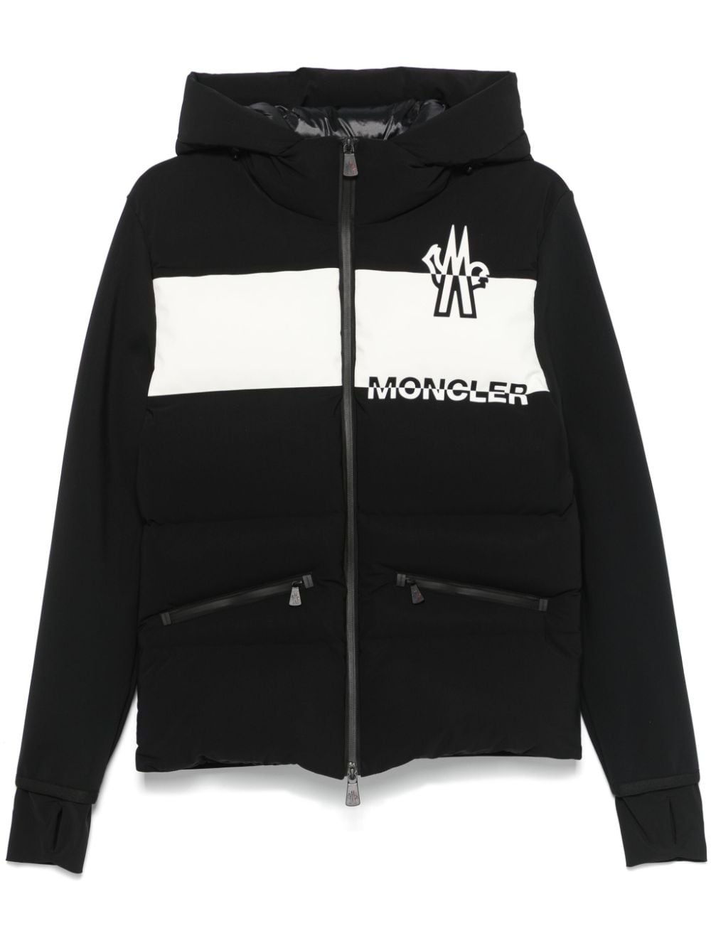 raised-logo jacket Highlights - Black/white - Down-feather filling - Padded design - Panelled design - Front two-way zip fastening - Drawstring hood - Funnel neck - Long sleeves - Thumb slots - Raised logo detail - Two side zip-fastening pockets - Full lining - Straight hem Imported Composition Outer: Polyester 55%, Polyamide 34%, Elastane 11% Lining: Polyamide 100%, Polyester 100%, Goose Down 90%, Goose Feather 10% SIZE & FIT Model measurements Height 5 ft 10 in(1.78 m) Bust/Chest 29.52 in(75 cm) Hips 34.64 in(88 cm) Waist 23.62 in(60 cm) FittingInformation Designed for a slim fit, offering a comfortable fit that sits just away from the body The sleeves are constructed with additional length and built-in thumb loops that allow for movement and a secure fit Made from a padded stretch fabric, giving it elasticity and a flexible fit