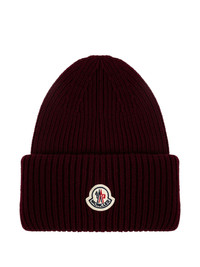 ribbed logo-patch beanie Highlights - Bordeaux - Wool blend - Brioche stitch - Turn-up - Felt logo patch Made in Italy Composition Wool 70%, Cashmere 30%