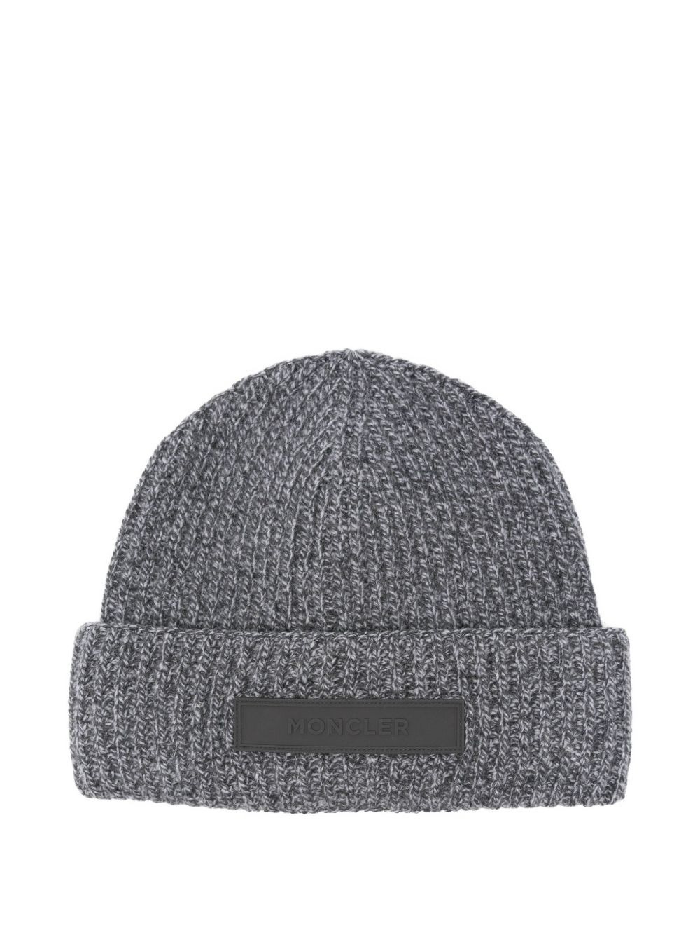 ribbed logo-plaque beanie hat Highlights - Grey - Ribbed knit - Wool-cashmere blend - Logo patch - Folded brim Made in Italy Composition Virgin Wool 90%, Cashmere 10%