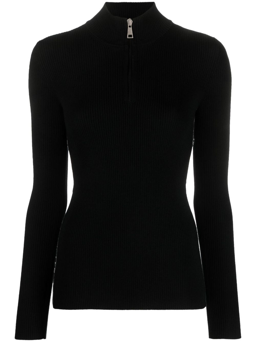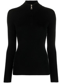 ribbed wool sweater Moncler is renowned for excelling in apres-ski wear, delivering comfortable and protective garments made from the finest materials. This jumper is a prime example, as it's spun from black virgin wool and finished with a cosy high neck. An intarsia-knit logo adorns the sides for a subtle branded note. Highlights - Black - Ribbed knit - Intarsia-knit logo - High neck - Half front zip fastening - Long sleeves - Straight hem Made in Italy Composition Virgin Wool 100%, Wool 98%, Spandex/Elastane 1%, Polyamide 1% SIZE & FIT Model measurements Height 5 ft 10 in(1.79 m) Bust/Chest 31.49 in(80 cm) Hips 35.03 in(89 cm) Waist 23.62 in(60 cm) FittingInformation Designed for a slim fit that sits just away from the body offering a close yet comfortable fit Made with a midweight knit, this piece offers some stretch This piece fits true to size – take your usual size Measurement BUST 30 in(76.2 cm) LENGTH 22.99 in(58.4 cm) WAIST 27.99 in(71.1 cm) SLEEVE LENGTH 24.48 in(62.2 cm)