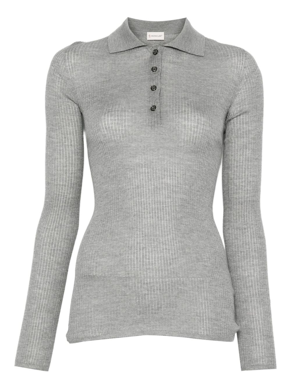 ribbed wool polo top Highlights - Grey - Ribbed knit - Long sleeves - Button fastening - Polo collar Made in Italy Composition Virgin Wool 100% SIZE & FIT Model measurements Height 5 ft 10 in(1.78 m) Bust/Chest 33.85 in(86 cm) Hips 36.61 in(93 cm) Waist 26.77 in(68 cm) Washing instructions Dry Clean Only