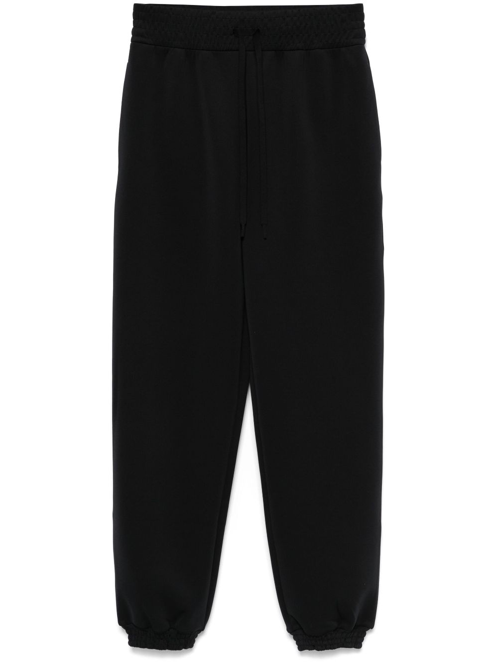 scuba jersey track pants Highlights - Black - Elasticated drawstring waistband - Two side slit pockets - Logo patch to the rear - Elasticated ankles Made in Italy Composition Polyester 87%, Elastane 13% SIZE & FIT Model measurements Height 5 ft 10 in(1.79 m) Bust/Chest 31.88 in(81 cm) Hips 35.43 in(90 cm) Waist 23.62 in(60 cm) FittingInformation Designed for a relaxed tapered cut, these trousers allow for a close fit at the waist and offer a loose fit at the thighs, with a closer fit toward the ankles The elasticated waist allows for a comfortable fit Made from a lightweight stretch fabric, this piece offers elasticity and flexibility when worn