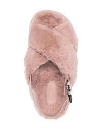 shearling cross-strap slippers blush pink shearling crossover strap at the toe buckle-fastening slingback strap open toe flat rubber sole Made in Italy Composition Outer: Lamb Fur 100%, Polyester 100% Sole: Elastodiene 100% Lining: Polyester 100% SIZE & FIT Measurement HEEL 1.96 in(5 cm) PLATFORM 1.77 in(4.5 cm)