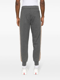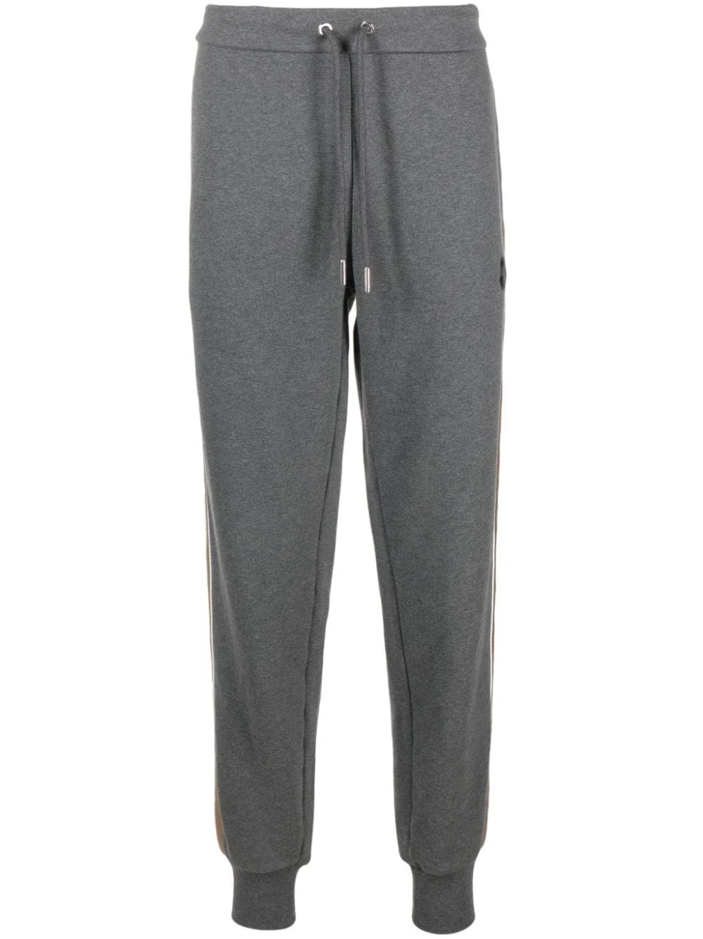 stripe-detail fleece track pants Highlights - Charcoal grey/light brown - Cotton blend - Jersey knit - Contrasting trim - Side stripe detailing - Logo patch to the front - Elasticated drawstring waistband - Two side slash pockets - Rear welt pocket - Tapered leg - Elasticated ribbed ankles - Fleece lining Made in United Kingdom Composition Cotton 80%, Polyester 20% SIZE & FIT Model measurements Height 6 ft 2 in(1.88 m) Bust/Chest 35.03 in(89 cm) Hips 35.82 in(91 cm) Waist 27.95 in(71 cm) FittingInformation Designed for a relaxed tapered leg, allowing a comfortable loose fit above the knee with a closer fit towards the calves Adjust this piece’s waistband to your preference using the drawstring Made from a midweight non-stretch fabric, this piece offers minimal elasticity when worn This piece fits true to size – take your usual size Measurement FRONT RISE 12.59 in(32 cm) INSIDE LEG 30.7 in(78 cm) HIPS 46.45 in(118 cm) Washing instructions Machine Wash