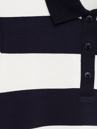 striped polo shirt Highlights - Black/white - Polo collar - Front button placket - Short sleeves - Side slits Imported Composition Cotton 100% Washing instructions Read Manufacturer Guidelines