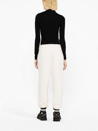 striped-trim track pants Moncler elevates casualwear by way of these AW23 track pants. They're crafted from white cotton fleece with a drawstring waistband and finished with black striped cuffs for a contrasting effect. Highlights - White - Cotton blend - Jersey fleece - Elasticated drawstring waistband - Two side slash pockets - Logo patch to the side - Ribbed cuffs - Stripe trim Imported Composition Cotton 91%, Polyamide 9% SIZE & FIT Model measurements Height 5 ft 10 in(1.79 m) Bust/Chest 31.49 in(80 cm) Hips 35.03 in(89 cm) Waist 23.62 in(60 cm) FittingInformation Designed for a relaxed tapered cut, these trousers allow for a close fit at the waist and offer a loose fit at the thighs, with a closer fit toward the ankles Adjust this piece’s waistband to your preference using the drawstring Made from a midweight non-stretch fabric, this piece offers minimal elasticity when worn This piece fits true to size – take your usual size