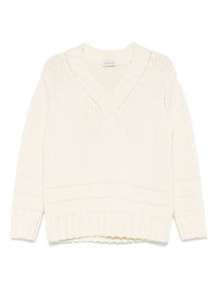 v-neck sweater Highlights - Beige - V-neck - Cable knit - Long sleeves - Straight hem Made in Italy Composition Virgin Wool 70%, Acrylic 30% SIZE & FIT Model measurements Height 5 ft 11 in(1.8 m) Bust/Chest 31.49 in(80 cm) Hips 36.61 in(93 cm) Waist 24.4 in(62 cm) FittingInformation Designed to be unstructured, offering a loose fit throughout The ribbed hem offers a close, comfortable fit Made with a midweight knit, this piece offers some stretch