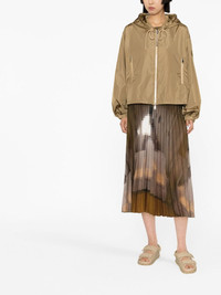 Vernois logo-print hooded jacket Designed as part of SS23, this Moncler hooded jacket is an unlined design for transitional weather. Here introduced in camel brown, the casual piece comes with a practical drawstring hood and is complete with contrast bright green logo embroidery at the back for an eye-catching finish. Highlights - Camel brown - Logo print to the rear - Drawstring hood - Long sleeves - Drop shoulder - Snap-fastening cuffs - Front two-way zip fastening - Elasticated trim Imported Composition Outer: Polyamide 100% Lining: Polyamide 100% SIZE & FIT Model measurements Height 5 ft 10 in(1.78 m) Bust/Chest 29.92 in(76 cm) Hips 34.64 in(88 cm) Waist 23.62 in(60 cm) Measurement SLEEVE LENGTH 17.71 in(45 cm) LENGTH 22.44 in(57 cm) BUST 51.18 in(130 cm) Shoulder Width 20.47 in(52 cm) FittingInformation Designed to be unstructured, offering a loose fit throughout The internal drawstring at the hem allows for fitted preferences Made from a lightweight non-stretch fabric This piece fits true to size – take your usual size Washing instructions Machine Wash