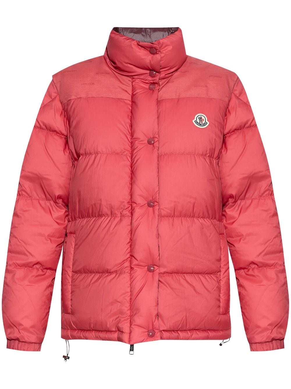 'Moncler Verone 1' reversible down jacket Highlights - Bubblegum pink/chocolate brown - Down-feather filling - Padded design - Panelled design - Front press-stud and zip fastening - Funnel neck - Jacquard logo motif - Logo patch at the chest - Detachable long sleeves - Elasticated cuffs - Internal drawstring fastening waist - Two side zip-fastening pockets - Full lining - Drawstring hem Imported Composition Outer: Polyamide 100% Lining: Polyester 100%, Down 90%, Feather 10%