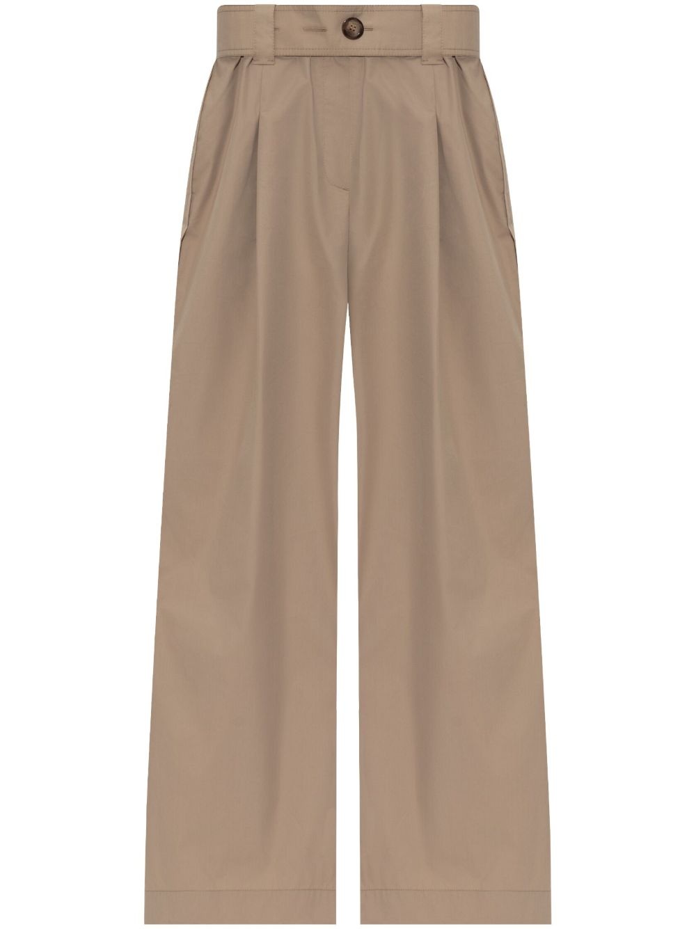 wide-leg trousers Highlights - Beige - Front button and zip fastening - Belt loops - Wide leg Imported Composition Cotton 70%, Polyester 30%