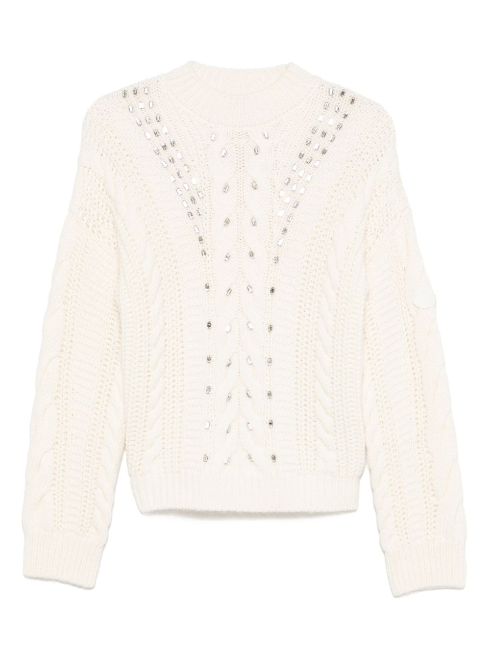 wool-blend sweater Highlights - White - Crew neck - Long sleeves - Ribbed cuffs and hem - Rhinestone embellishment Made in Italy Composition Wool 89%, Mohair 6%, Polyamide 5%