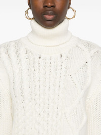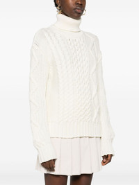 wool turtleneck sweater Highlights - White - Virgin wool - 3d-knit construction - Aran knit/cable knit/half-brioche knit - Roll neck - Drop shoulder - Long sleeves - Ribbed cuffs and hem Made in Italy Composition Virgin Wool 100% SIZE & FIT Model measurements Height 5 ft 11 in(1.8 m) Bust/Chest 32.67 in(83 cm) Hips 36.22 in(92 cm) Waist 24.4 in(62 cm) FittingInformation Designed for a slim fit that sits just away from the body offering a close yet comfortable fit Made with a midweight knit, this piece offers some stretch