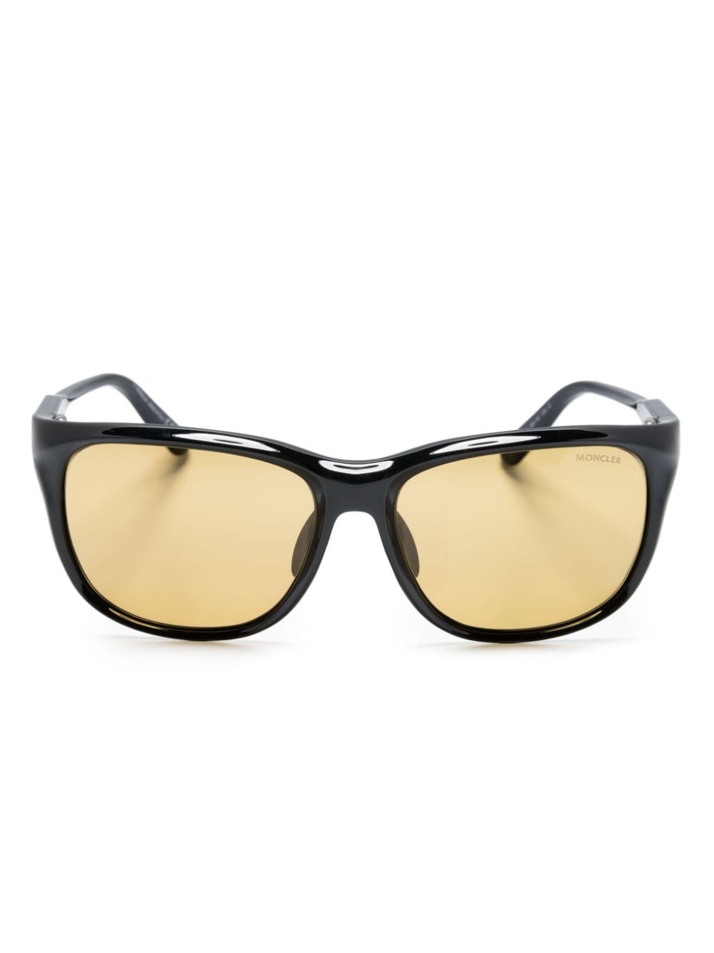 x FRGMT biker-frame sunglasses Designed by Hiroshi Fujiwara in collaboration with FRGMT, these Moncler sunglasses speak to the collection's celebration of a 'subtle, pared-down design language'. They're simply embellished with the brand's logo at the arm. Highlights - Black - Acetate - Biker-style frame - Tinted lenses - Lens decal - Nose pads - Logo-engraved arm - Curved arms/tips - These glasses come with a protective case. Made in Italy Composition Acetate 100% SIZE & FIT Measurement Arm Length 5.11 in(13 cm) Bridge Width 0.62 in(1.6 cm) Lens Diameter 2.36 in(6 cm) Total Width 5.9 in(15 cm)