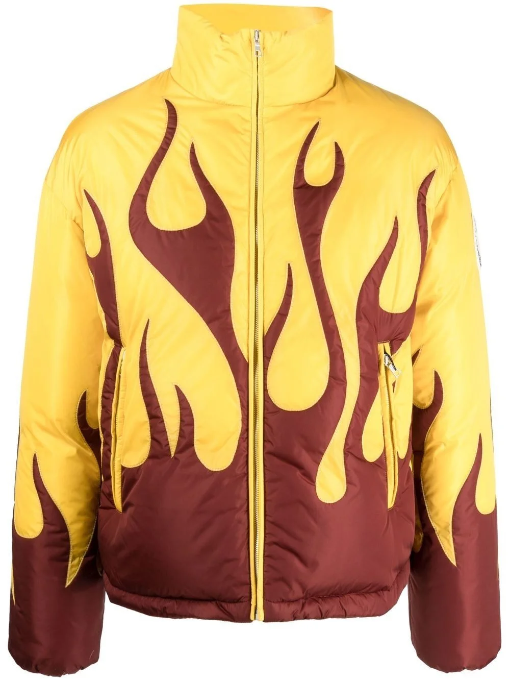 x Moncler Clancy padded jacket Presented as part of its collaboration with Moncler, Palm Angel’s Clancy jacket expertly combines both brands’ unique identities. The funnel-neck padded design speaks to Moncler’s outerwear prowess while the bold flame detailing is emblematic of Palm Angel’s penchant for loud designs. Highlights - Yellow - Maroon - Feather down - Padded design - Flame print - Front zip fastening - Funnel neck - Long sleeves - Straight hem - When buying this unisex item, keep in mind that it is graded in standard men's sizing. Made in Italy Composition Outer: Polyamide 100% Lining: Polyamide 100%, Feather Down 100% Washing instructions Hand Wash